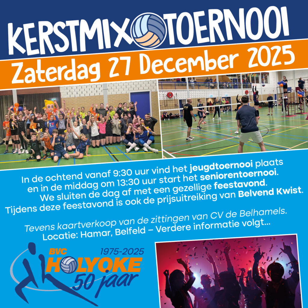 Het kerstmixtoernooi is dit jaar op zaterdag 27 december. Het belooft weer een hele gezellige dag te worden. ’s Morgens is de jeugd aan de beurt, ’s middags de senioren. We sluiten de dag af met een feestelijke avond met prijsuitreiking van Belvend Kwist en de kaartverkoop van de zittingen van de Belhamels. Lees verder voor meer informatie.